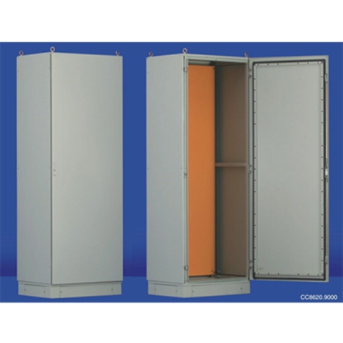 SPCC优质冷扎钢板制作;厚度:安装板2.5mm,前门及横撑条2.0mm,骨架和后板1.5mm,顶盖和底板1.2mm。