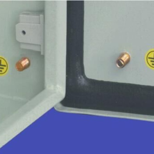 箱体上预装接地螺栓,门上有接地钉;