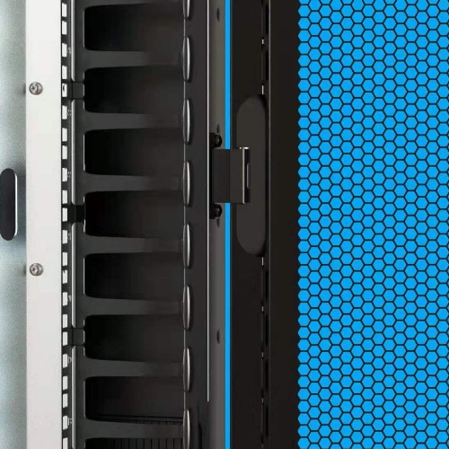 (5)宽大、内凹的后立柱PDU及线缆安装空间,线缆上出口直通不用转弯,不影响服务器安装;