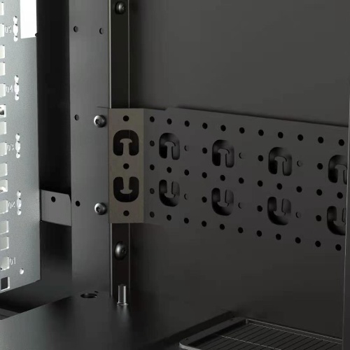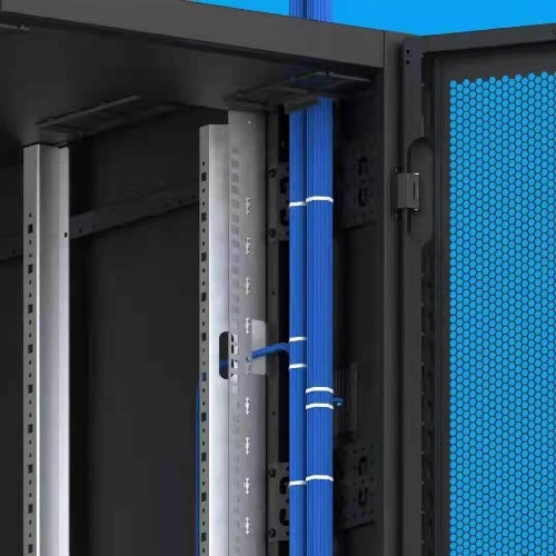 (7)机柜前立柱带理线槽,理顺前部线缆向上、向后、向左右导出,上出线不需要转弯,不影响服务器安装;